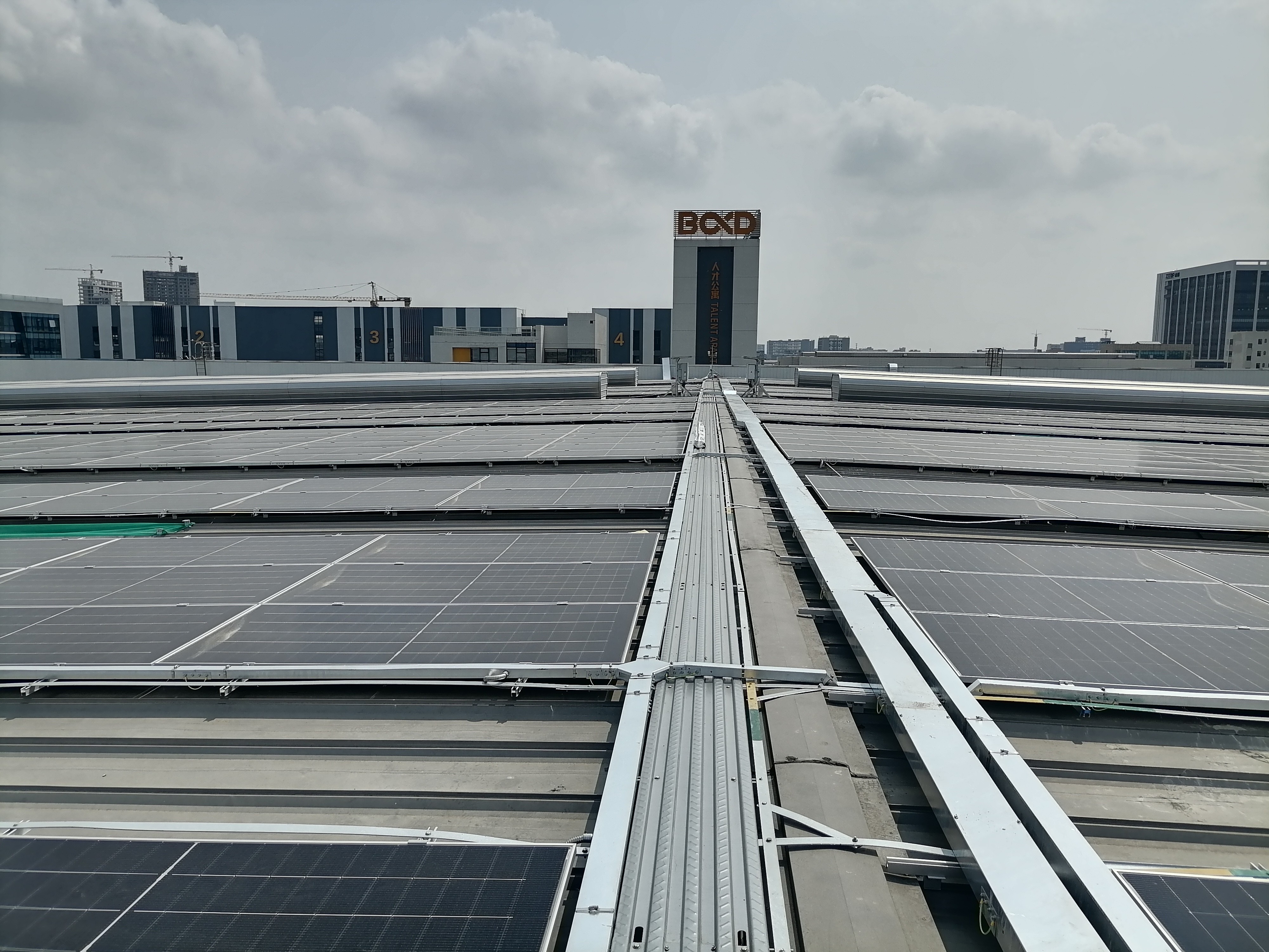 项目位于广东省佛山三水宝湾物流园,充分利用园区约8万平方米的建筑屋面空间,总装机容量6.15MWp,采用“自发自用、余电上网”的运营模式,有效提升光伏能源的利用效率与调度灵活性。